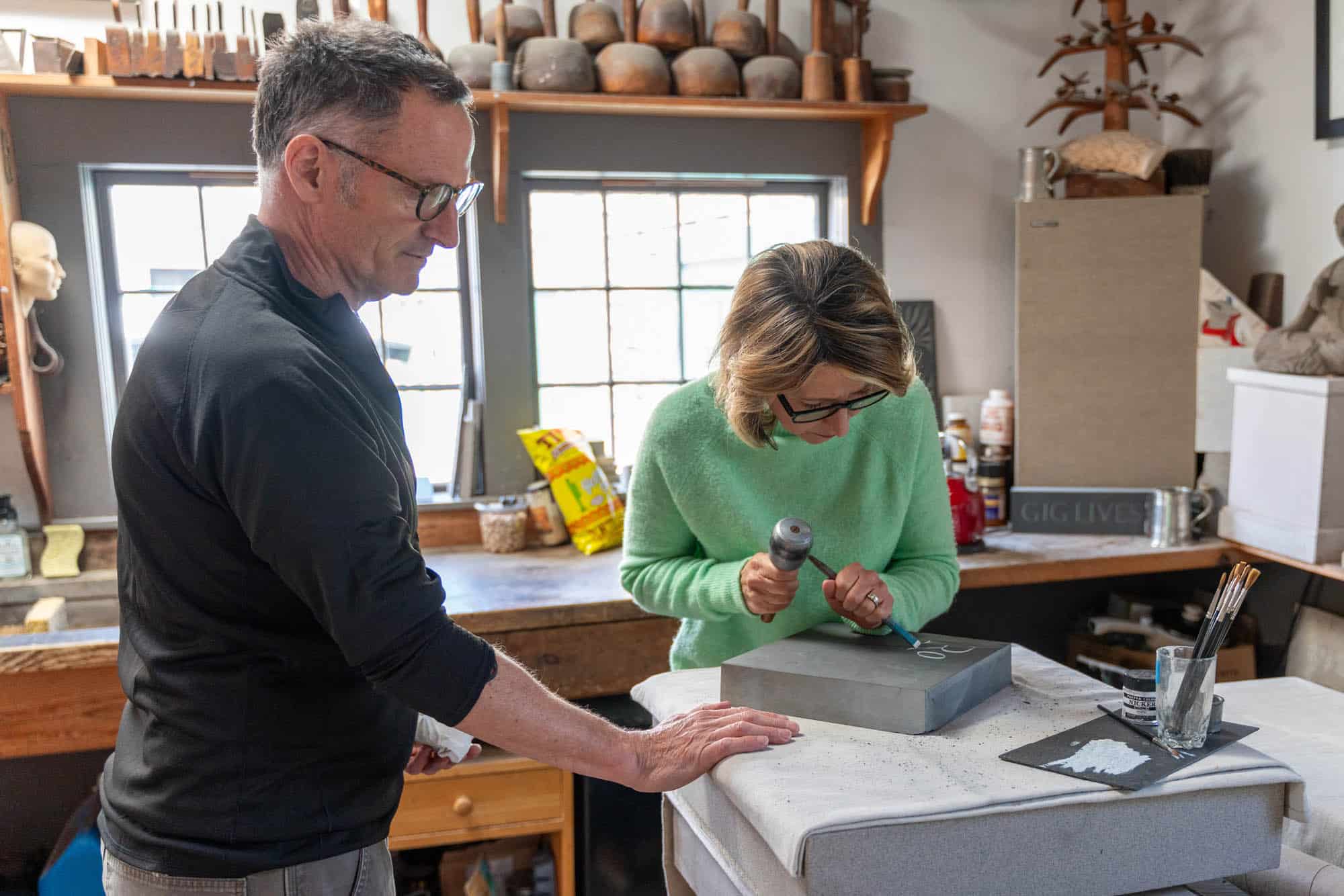 Ever see someone’s sign at a concert or race and think, “Wow, that’s a really beautiful sign.” Well, The John Stevens Shop will have your jaw on the ground. Since 1705, this shop has specialized in handmade, one of a kind stone inscriptions. Current owner and creative director, Nick Benson is a third generation stone carver and continues this ancient tradition. His inscriptions are done in two different standard fonts, and they’re the kind of fonts we are used to typing on the computer. Nick, though, can carve them by hand without making a single mistake. I join him to see just how much skill it takes to carve a single letter!